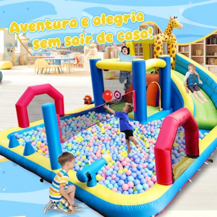 - Perfeito para o Verão: O escorregador inflável com água é ideal para refrescar as crianças nos dias quentes e garantir horas de alegria.