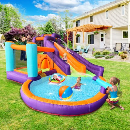 - Diversão Garantida: Combina as melhores atividades em um só brinquedo: pula-pula inflável, escorregador aquático e piscina infantil.